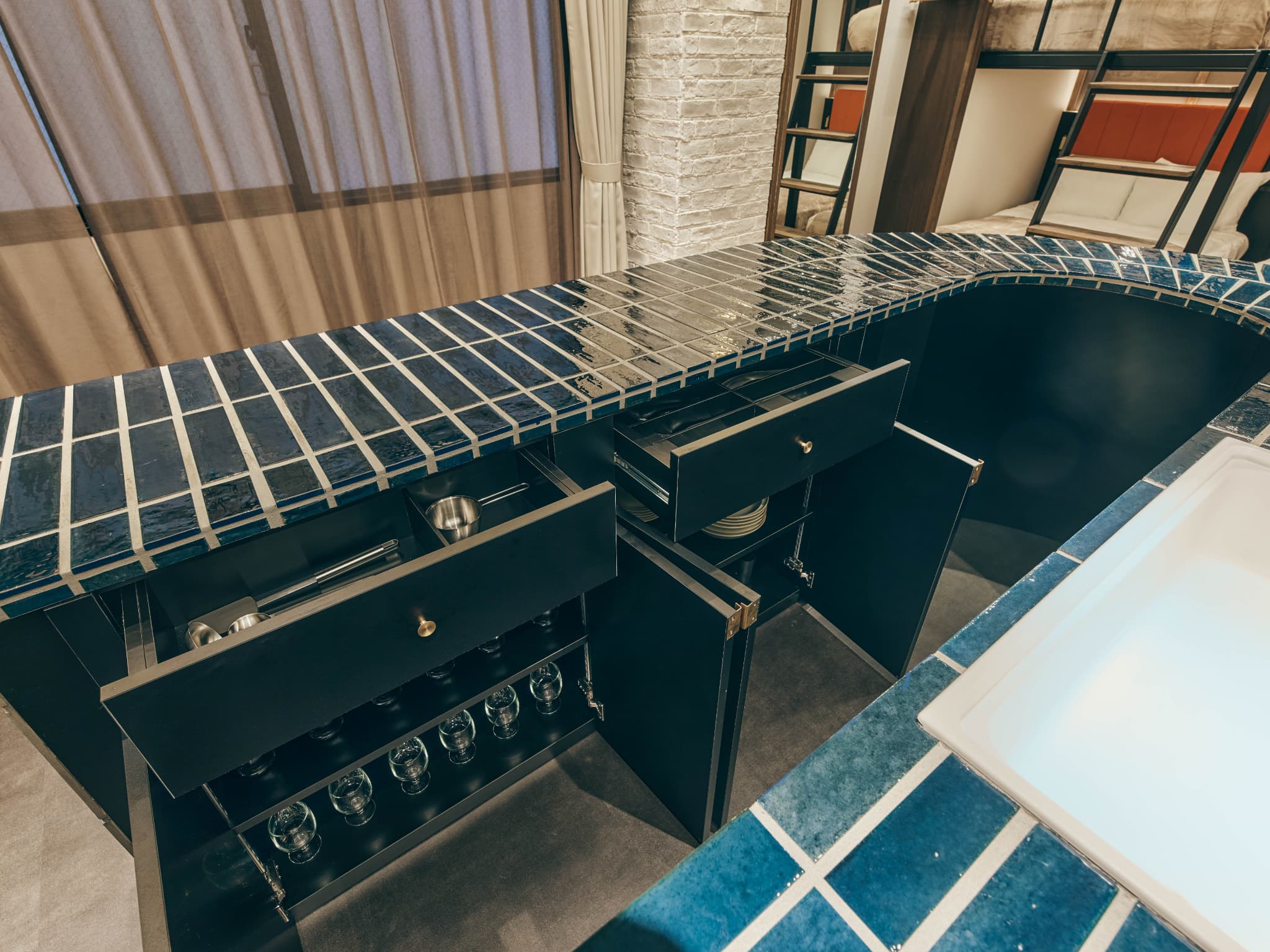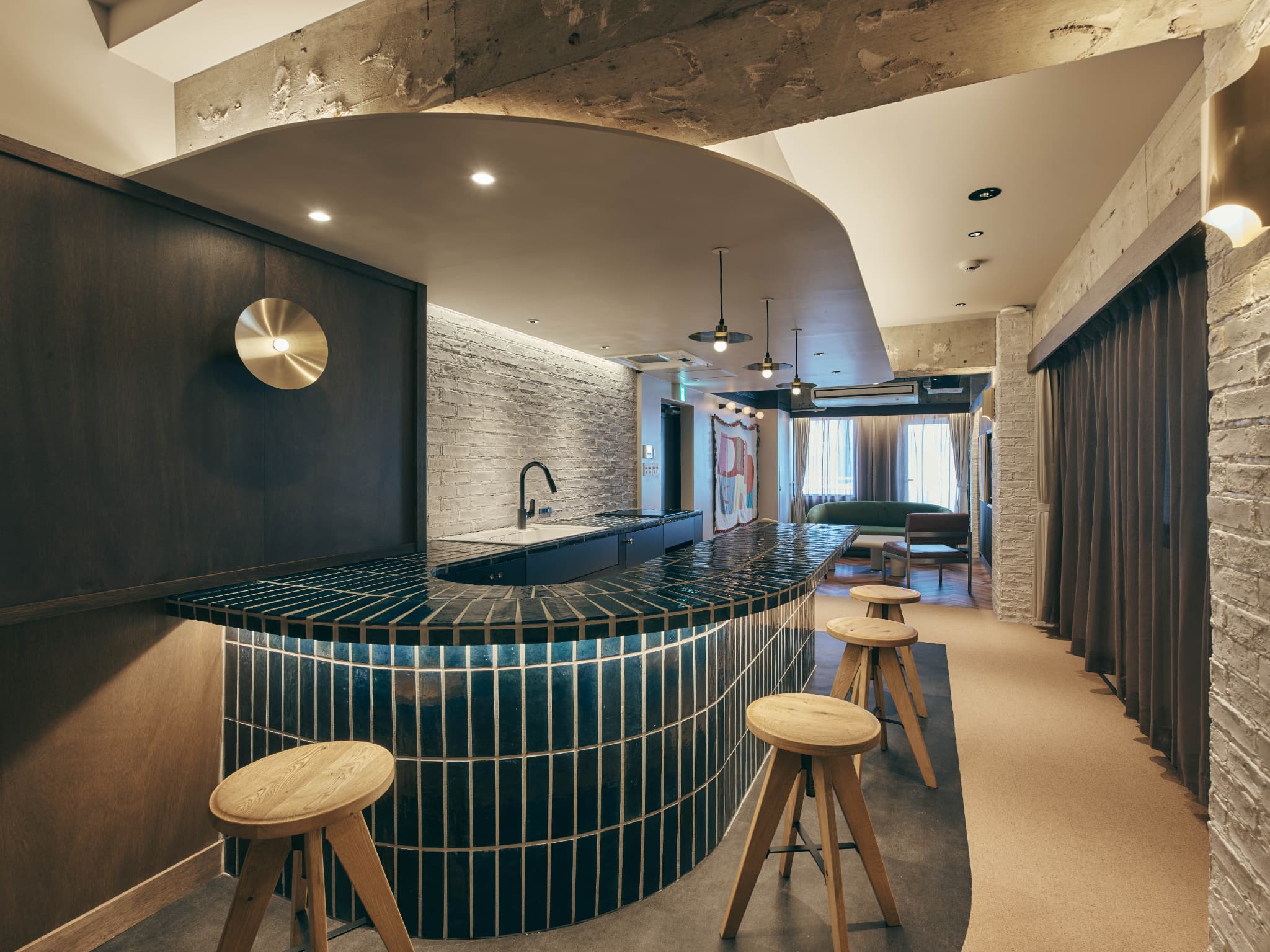 艶やかなタイルに包まれたU字型カウンターキッチンが象徴的な「illi Lay Shibuya-Ebisu」は、さまざまな素材と色彩が重なり合う、奥行きのある空間です。キッチンを囲んで食事や会話を楽しんだり、ソファでゆったりとくつろいだり、日常と旅のあいだにあるような豊かなひとときをお過ごしいただけます。都心へのアクセスに優れ、洗練された空気感と気取らない居心地の良さが共存する恵比寿で、いつもと少し違う、あたらしい東京の魅力を体験してみませんか。