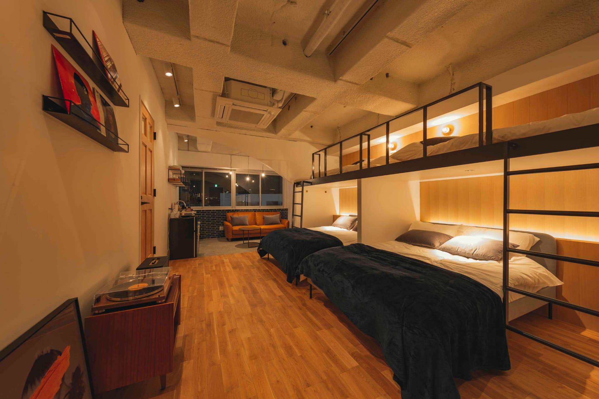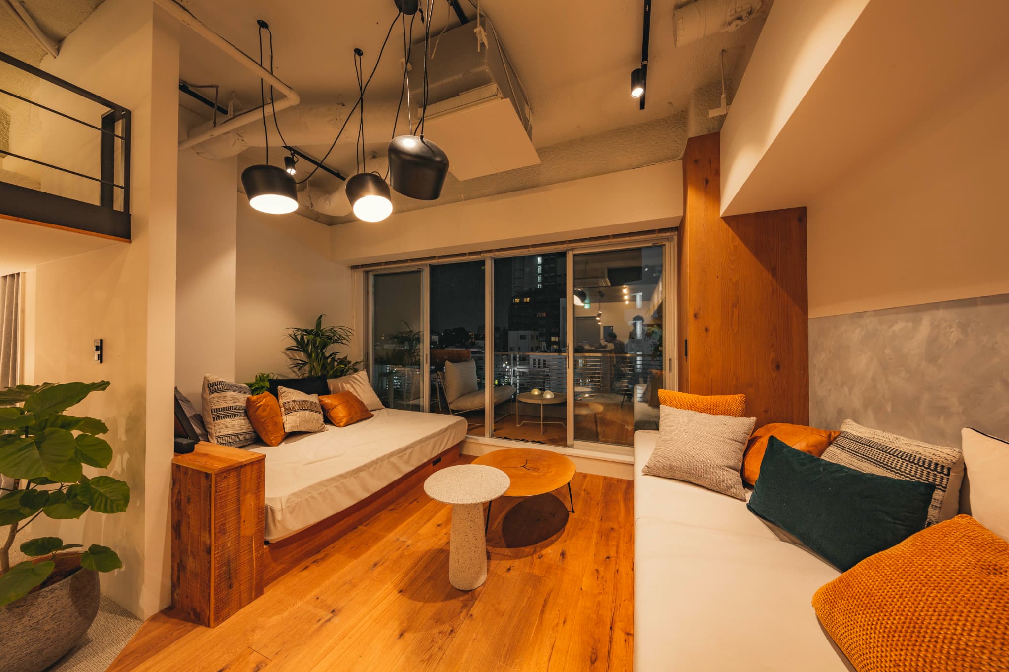 デザインが異なる全4室には、下北沢のカルチャーや雰囲気を感じるアイテムを取り入れています。301号室には開放的なテラス、401号室には心地よいソファスペース、501号室には街並みを眺めるダイニング、601号室には会話が弾むようなバンクベッドなど、ご滞在シーンに合わせてお好みをお選びください。下北沢や都心を散策した後、少し贅沢で遊び心あふれる家に帰りたい旅行者に最適です。
