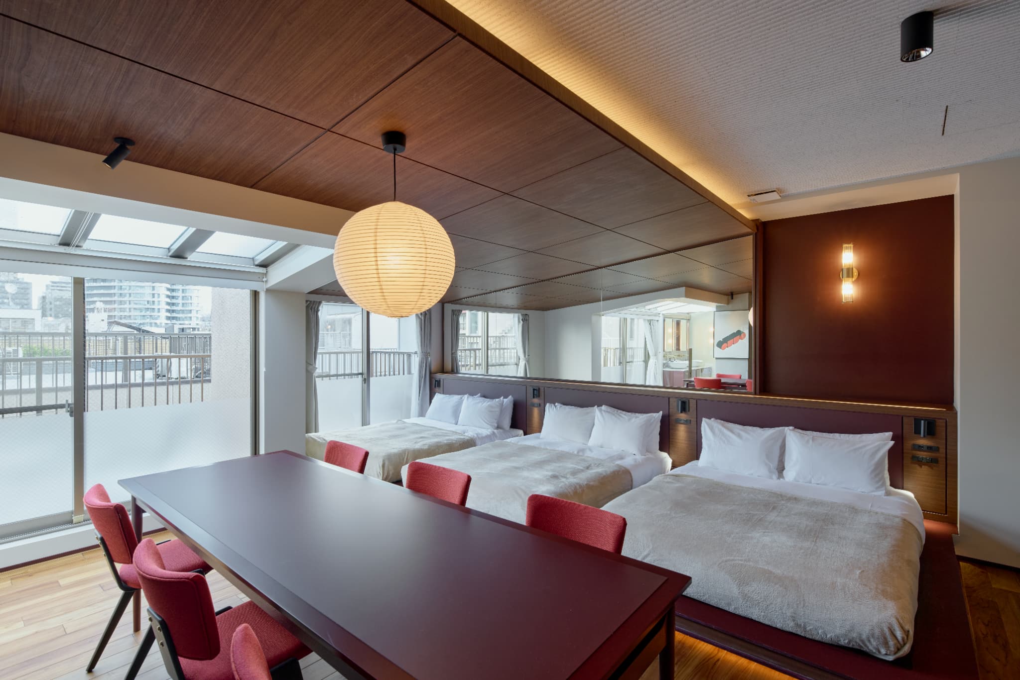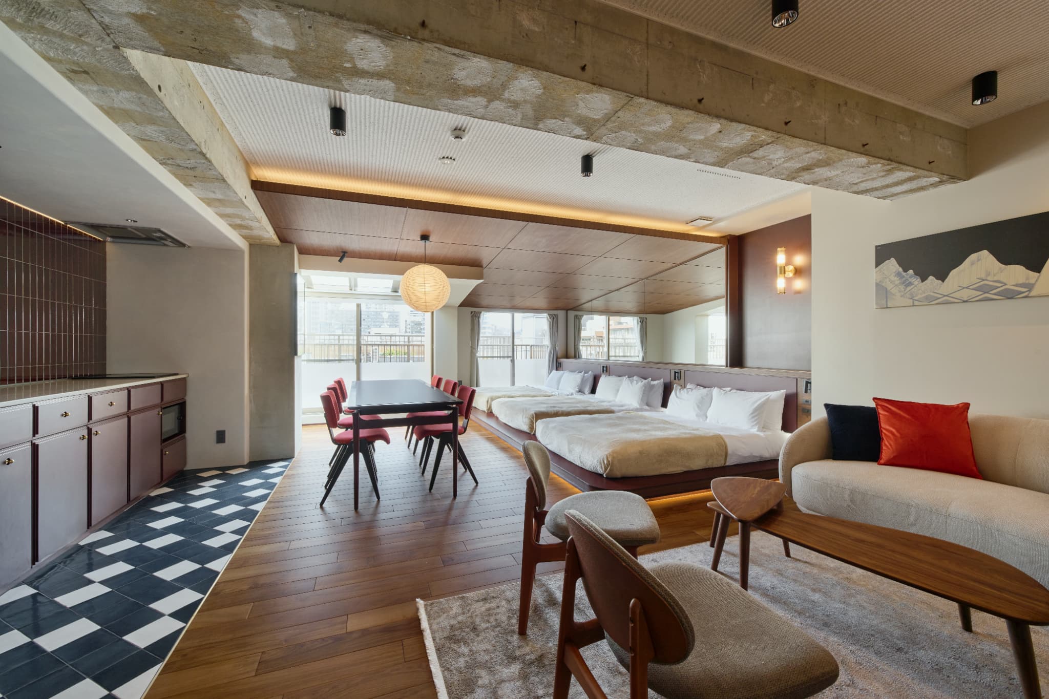 「illi Tex Aoyama」は、青山の好立地に位置し、タイルやフローリングを贅沢に使用した、本物のテクスチャーを感じられる空間が特徴です。全3室はそれぞれ異なるレイアウトで、ご滞在のシーンに合わせた選択が可能です。都会の喧騒を離れ、特別なひとときをお楽しみください。