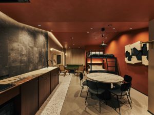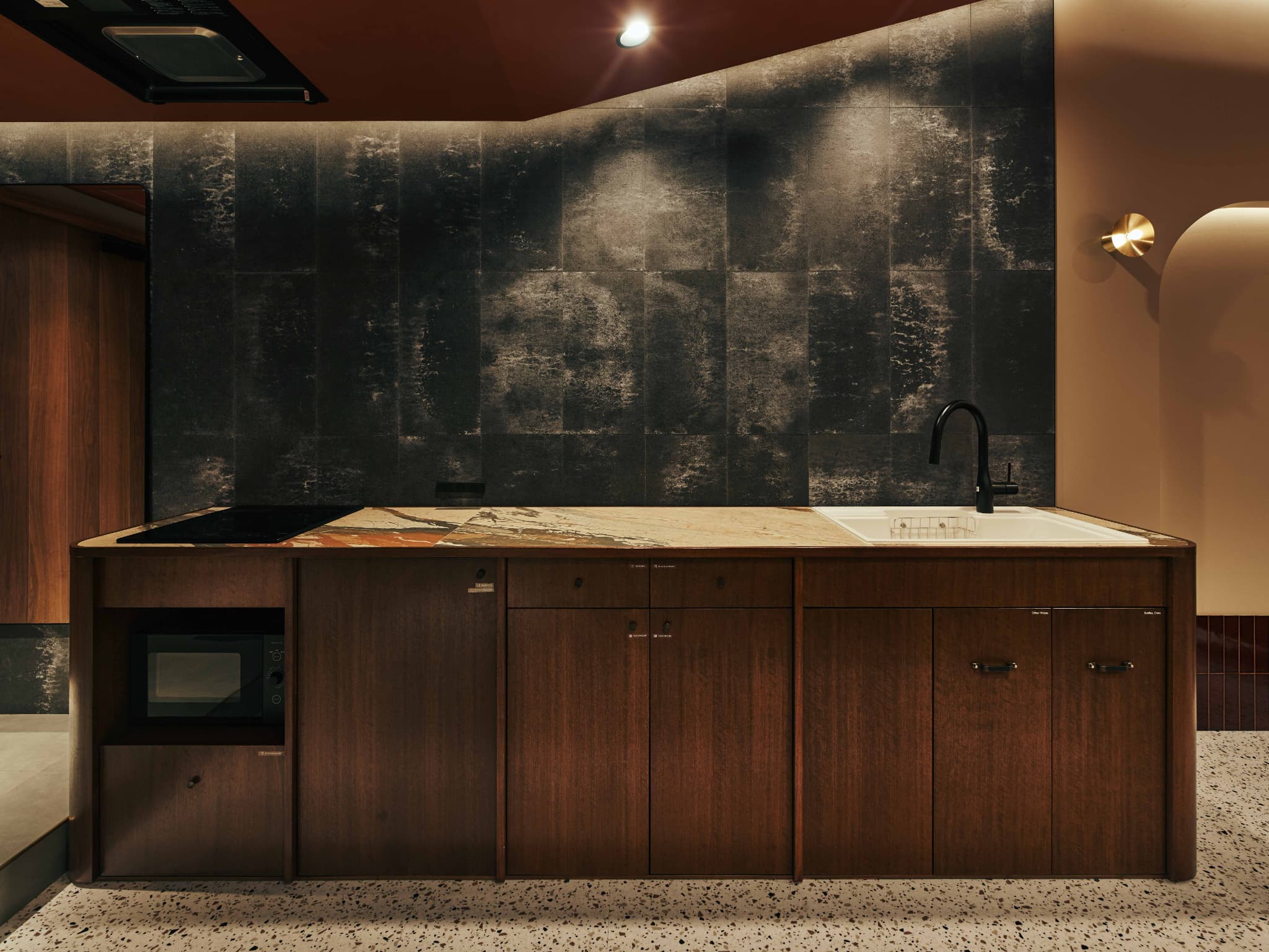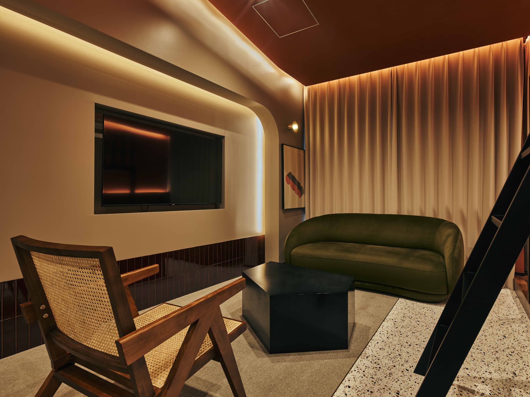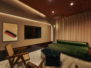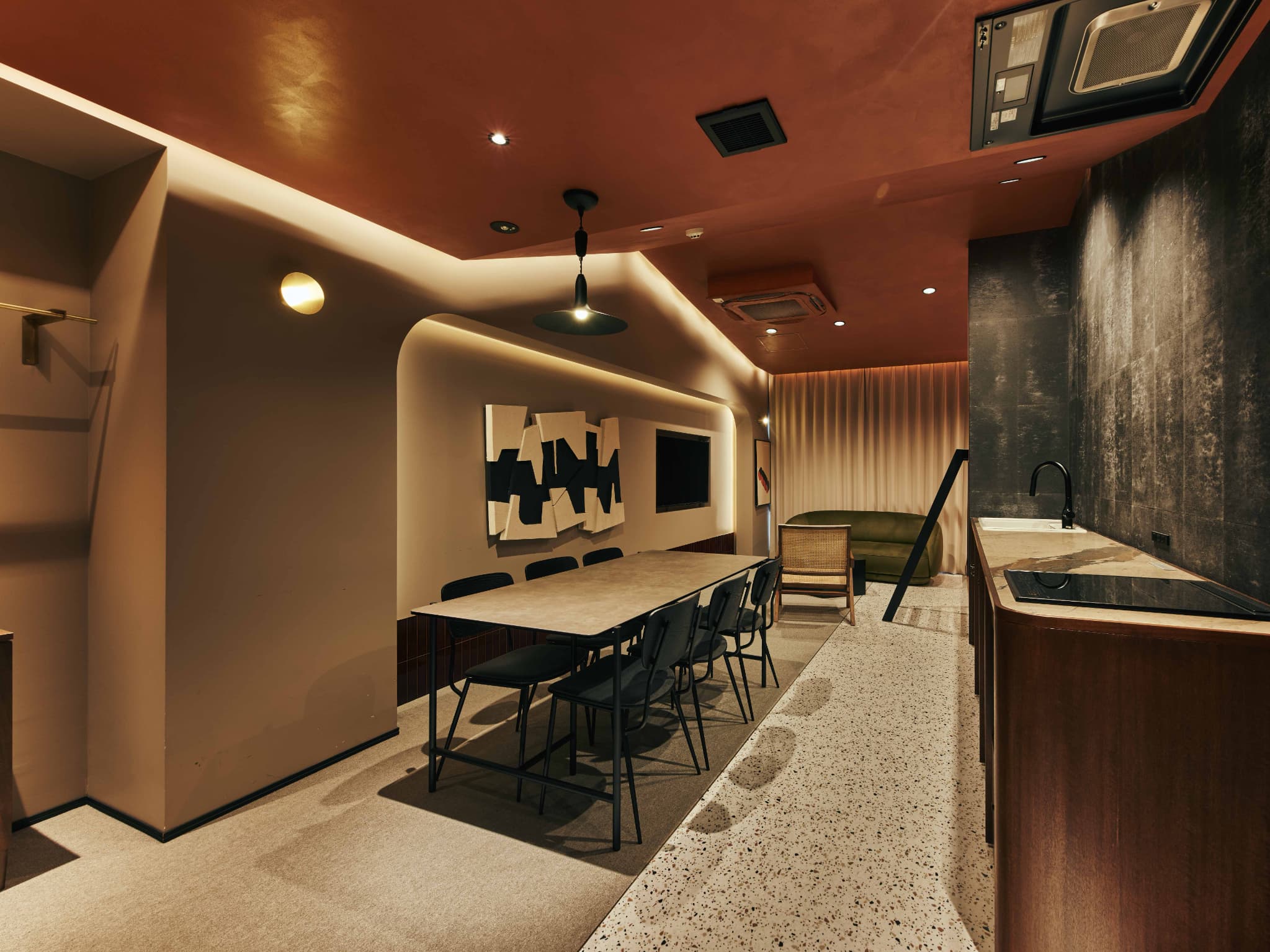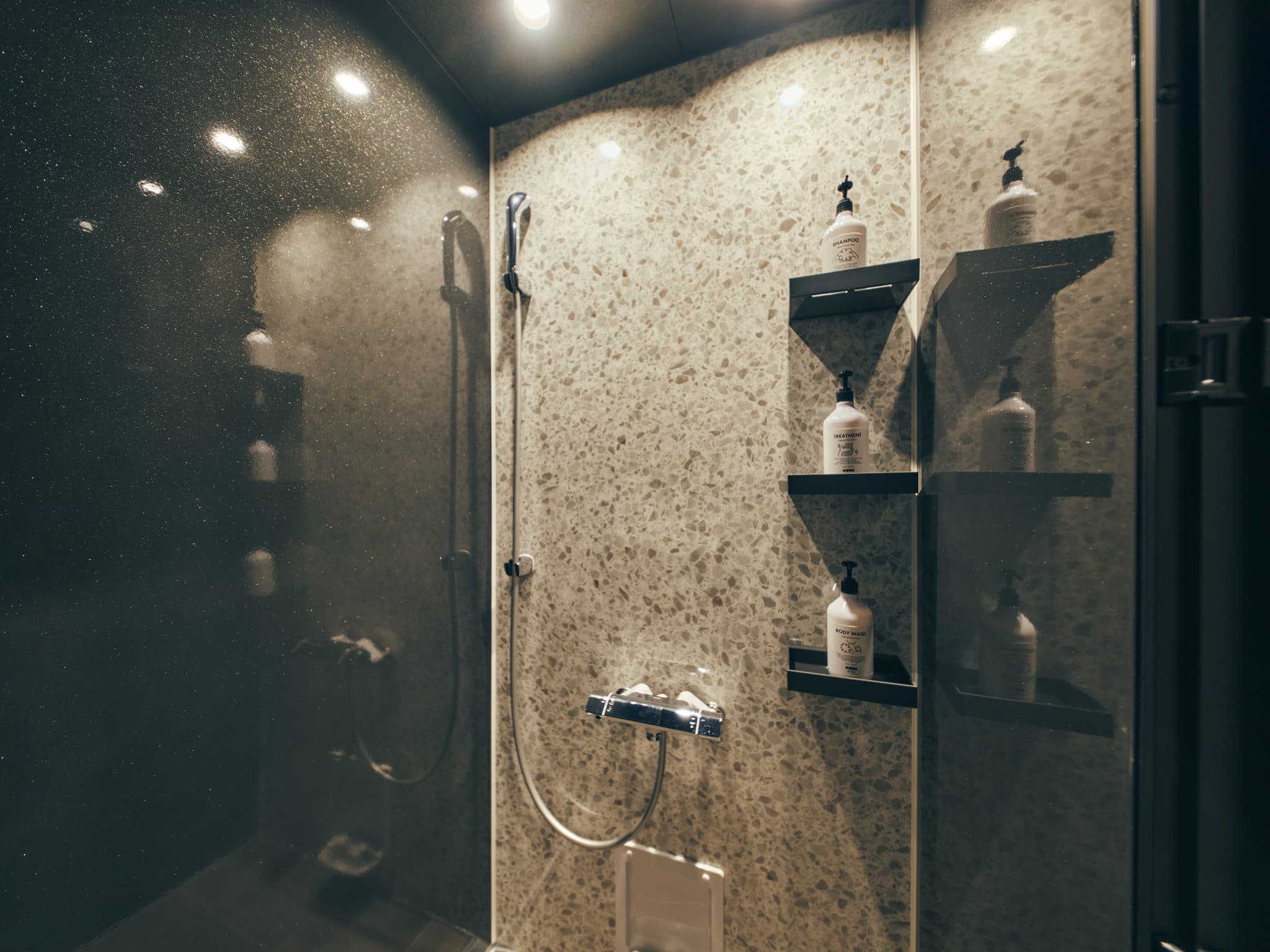 三角形をモチーフにした印象的なデザインに、テラコッタの温もりと上質な素材が調和し、客室に心地よい安定感をもたらします。高い天井が生む開放感の中で、ペントハウスのような贅沢なひとときをお楽しみいただけます。賑わう渋谷の中心に佇む、心をほどくあなただけのプライベート空間が待っています。